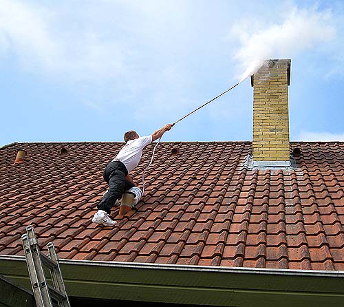 Han sprøjtede først på altanen, hvorfra vi fjernede os hurtigt! Og derefter op på skorstenen, som fik et par gange.
