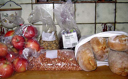 I Foderstoffen købte jeg en hel sæk vildtfuglefrø samt vejede en stor pose nødder af. Jeg har stadig solsikkefrø og rosiner på lager.