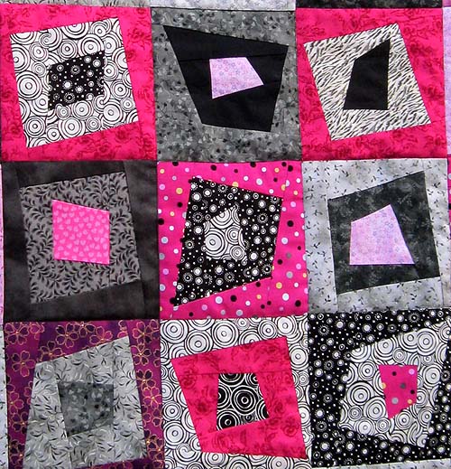 Foreningen havde indkøbt forskellige ensfarvede stoffer samt vat, medlemmerne havde afleveret 15 x 15 cm stykker i mønstrede, livlige stoffer, og kassereren havde lagt et kæmpestort arbejde i at skære ud, presse og forberede blokkene, så det var lige til at gå i gang med.