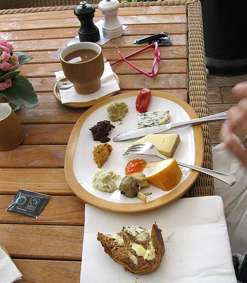 Her spiste vi meget lækre oste med hjemmebagt brød og spændende tapenader..