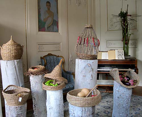 Udstillingen i huset er kurve, udlånt fra Vissinggaard, pynte med blomster af Bjarne Aarhus – som altid utroligt smukt og bl.a ved udstrakt brug af vilde blomster og grene.