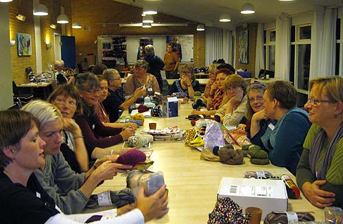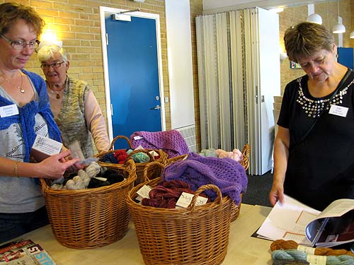 Lene og Inger fra Gårdbutikken Katrinelund kom med store kurve fulde af blødt-blødt merino-, silke- og tweedgarn og skønne strikkekits i uldgarn efter i egne designs ..