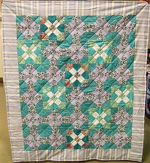 Blokkene er ikke talt op endnu, men alene lørdag modtog vi 40 flotte puttetæpper – så mange tror jeg ikke vi nogensinde har modtaget på én dag før. Bl.a. kom der flere “monteringstanter” med tæpper, som de har monteret og quiltet af blokke, som mange andre har syet, og det er sjovt at se tæpper med blokke fra tidligere år, som f.eks. fra 2009: