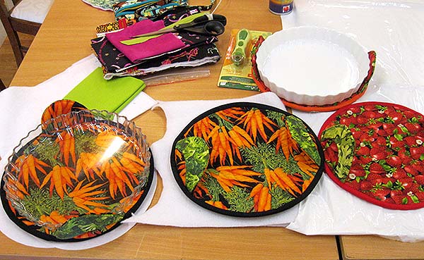 Eller disse fantastiske “Tærte futter”, syet i festlige frugt- eller grøntsagsstoffer, foret med grillfor og med “ører”/lommer til at stikke fingerne ind i, når man holder det varme fad.