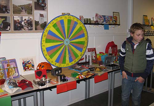 Lykkehjul for 1 kr – og præmierne er eleverne selv kommet med.