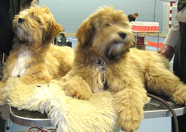 Her er årsagen til den fine gave: BeBe til venstre i skøn samdrægtighed med sin bror Barley. Det er så sjovt at se (og mærke) forskellen på den feminine pige og den kraftige maskuline dreng med større hoved og større poter! De er så fine begge 2! Og jeg er da stolt af datteren, som har arbejdet længe på det flotte sjal. Jeg har aldrig vovet mig ud i noget lignende.