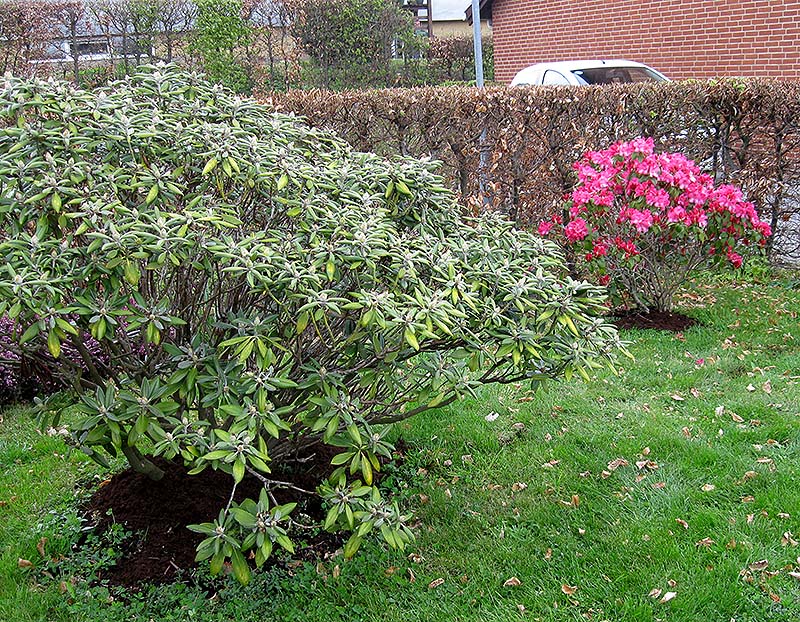 Det skulle jo gerne gøre gavn under rhododendronerne nu, og hvis det ikke blev spredt nu, skulle jeg vande en hel masse.