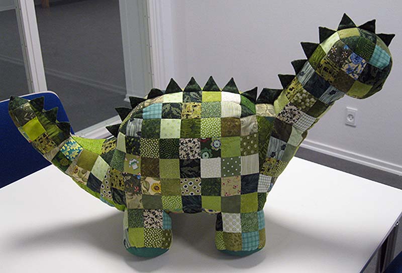 Karen har syet en meget stor Dinosaurus (mønster i mindre str. fra Peluniuka.dk), til en anden. Den er virkelig imponerende.