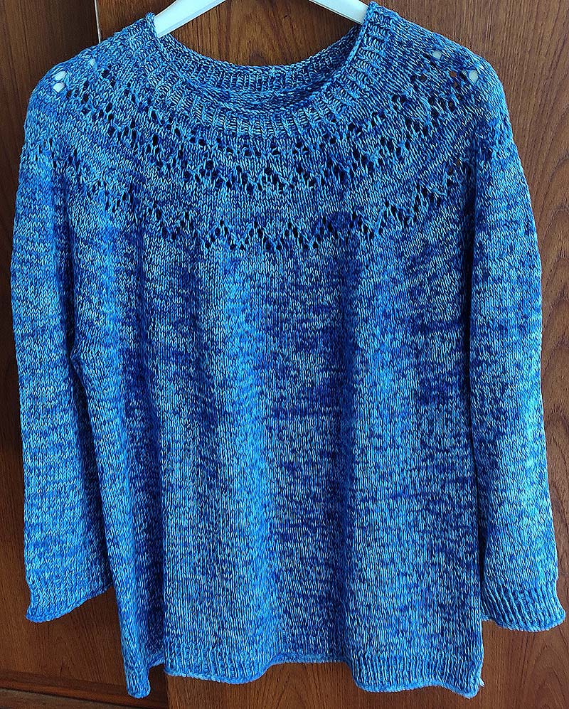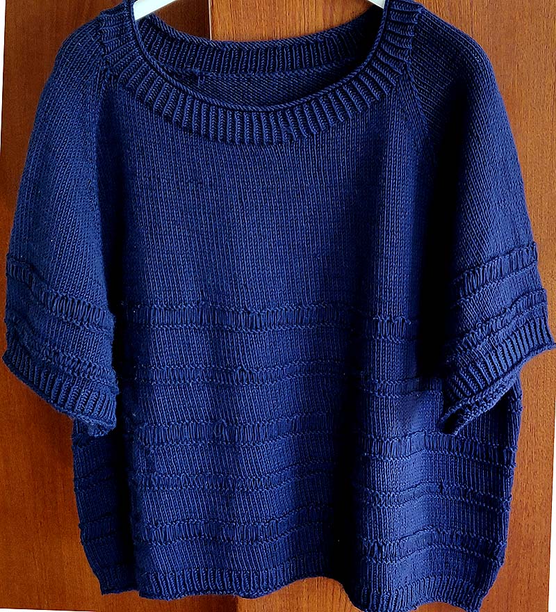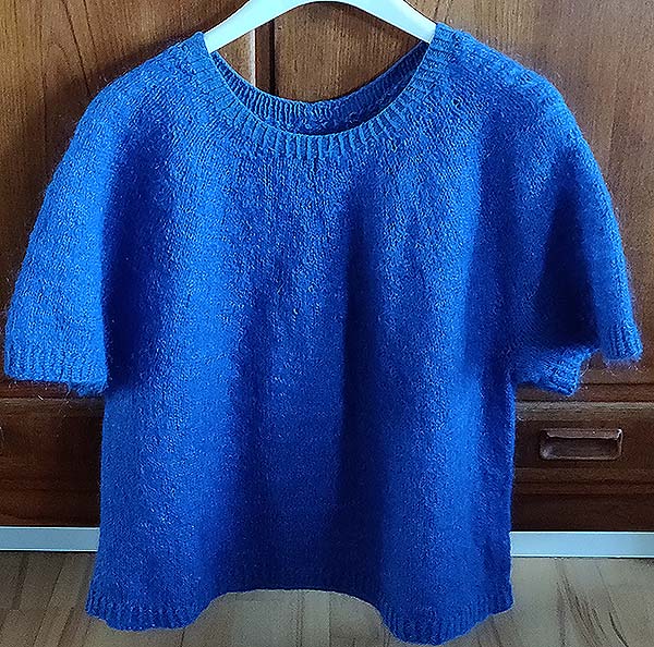 “Tide Tee”, opskrift af Hanne Rimmen, garn 1 tråd bomuld/uld og 1 tråd mohair.