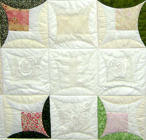 Det er et utrolig smukt tæppe, og det er en rigtig god måde at få brugt alle de gamle blonder. Det er godt med de afdæmpede farver til at bryde med alt det hvide.