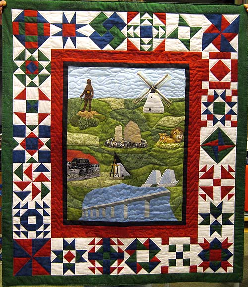 Til slut fik jeg lov at beundre Vejle Quilternes fælles bidrag til DPF’s medlemudstilling ved Træffet i august med tema “Sommer i Danmark”. Det er syet i fællesskab, i hånden og viser meget flot forskellige seværdigheder fra Vejle-området. Nogle har syet billederne, andre har syet blokkene udenom eller quiltet. Rigtig flot!