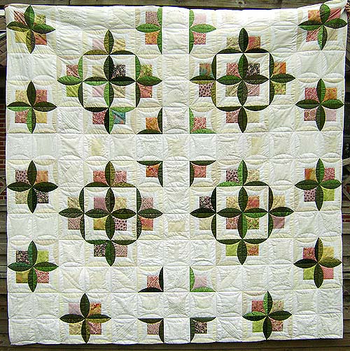 Jeg er ved at skære halvcirkler til endnu et stort sengetæppe i japansk foldeteknik med blomstereffekt. Igen – igen, men det har jeg vist skrevet før. Jeg har regnet ud, at denne gang skal jeg bruge 161 blokke, 97 kulørte og 64 hvide. Det mindre antal er pga at de 4 blokke i hvert af de forreste hjørner ikke skal med, så vil tæppet nemlig hænge lige ned i hjørnerne og ikke i en fold.