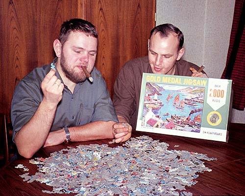Jeg kom godt i snak med værten, jeg havde en frisk replik, så jeg drillede ham, og det kunne han vist ikke stå for. På et tidspunkt ville han være galant og tænde min cigaret, men havde for travlt (der var nok røget nogle øl og snaps indenbords), så han fik sat ild til hele tændstikæsken og brændte en finger slemt, så han næste dag måtte til læge på det lille lazaret. Senere fortalte han, at han havde siddet i venteværelset med den forbrændte finger strittende meget synligt for ikke at blive mistænkt for at fejle noget helt andet og meget mere pinligt, som var den hyppigste årsag til unge mænds besøg på lazarettet!